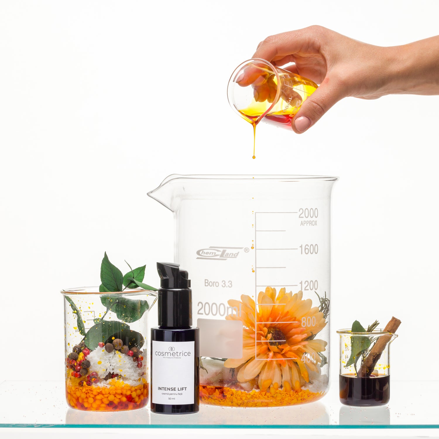 Cosmeceutic de înaltă performanță, cu ingrediente active de origine naturală cu efect antirid validat științific. Acționează împotriva îmbătrânirii cutanate intrinseci (formarea radicalilor liberi, rigidizarea colagenului) și extrinseci (fotoîmbătrânirea), la nivelul epidermului, dermului, hipodermului. Formula noastră avansată este special concepută pentru a combate semnele vârstei, oferind o transformare vizibilă a pielii. Cu o concentrare ridicată de ingrediente active sinergice, tratamentul nostru este gândit să relaxeze, să netezească și să redefinească conturul feței, asigurând o experiență de înfrumusețare completă. Efectele noastre promise vă invită într-o călătorie către o piele impecabilă și o strălucire continuă.